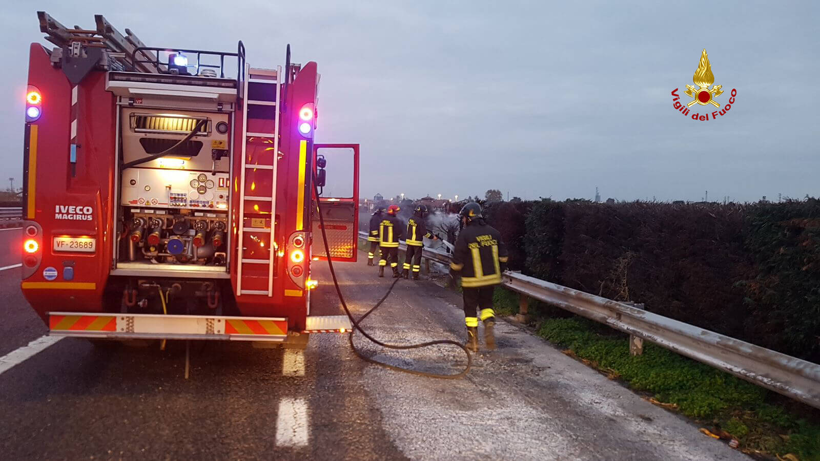 La segnalazione è arrivata da alcuni automobilisti in transito sull’autostrada A4 in direzione Venezia. Ieri pomeriggio alle ore 16.45, i vigili del fuoco sono intervenuti lungo l’autostrada A4 tra i caselli di Vicenza Est e Grisignano per l’incendio di una siepe. La squadra di Vicenza intervenuti con la prima partenza hanno rapidamente spento il principio d’incendio che ha interessato qualche metro della barriera verde a ridosso della corsia di emergenza. La squadra ha fatto rientro alle ore 17.30.