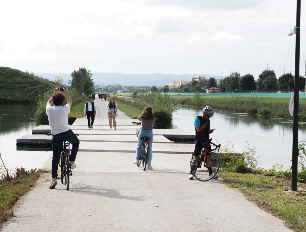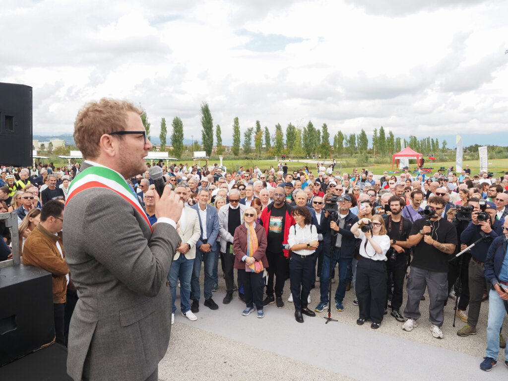 Il momento più atteso è stato il taglio del nastro – un tricolore lungo 100 metri – che ha ufficialmente aperto i cancelli del parco. «Questo parco, che oggi è già così pieno di vita, è nato 15 anni fa da una grande mobilitazione civica contro la militarizzazione – ha detto il sindaco Giacomo Possamai –. È insieme straordinaria infrastruttura verde e pensiero collettivo sulla Pace: una delle più grandi opportunità per il futuro della nostra città».