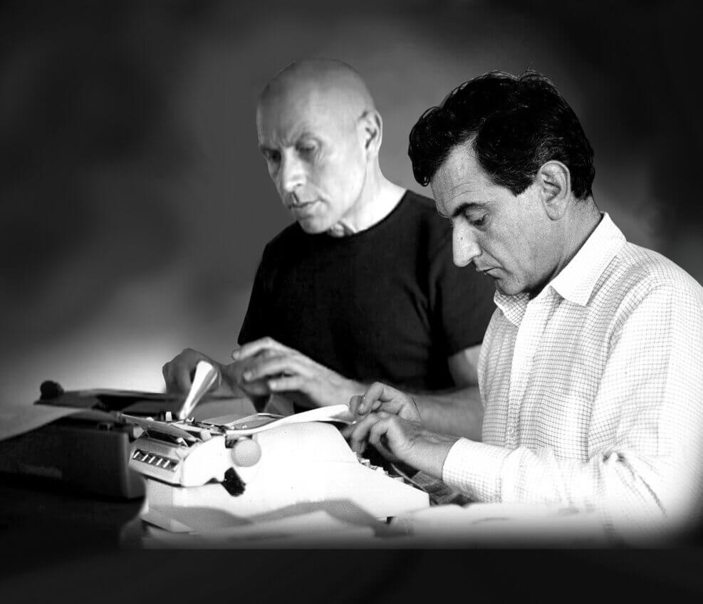 Goffredo Parise e Vitaliano Trevisan nel fotomontaggio tratto dalla locandina dello spettacolo | TViWeb Goffredo Parise e Vitaliano Trevisan nel fotomontaggio tratto dalla locandina dello spettacolo | TViWeb