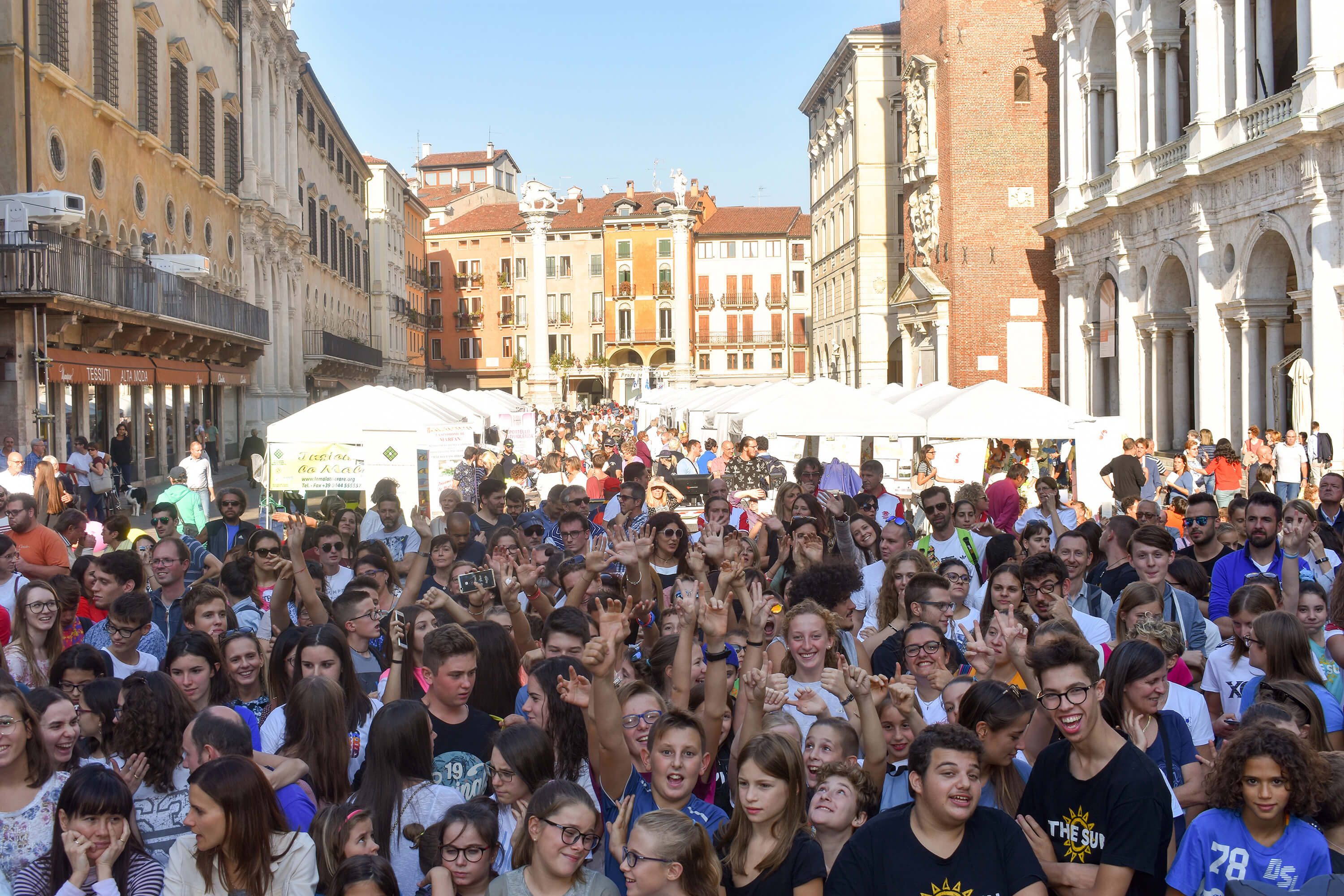 Un bellissimo successo quello di Azioni Solidali Vicentine, che ha colorato Piazza dei Signori per una giornata ricca di incontri, impegno e oltre 100 associazioni, iniziando con la sfilata del Gruppo Musici e Sbandieratori di Piovene Rocchette “Alfieri della Regina” insieme al Gruppo Medievale “Contrade del Palio” di Camisano Vicentino, passando per la diretta di Radio Vicenza con le testimonianze delle Associazioni che festeggiavano importanti anniversari o proponevano interessanti incontri formativi, fino all’Aperitivo Consapevole offerto dall’Associazione ACAT Bassano-Asiago che si occupa di persone vittime di dipendenze.