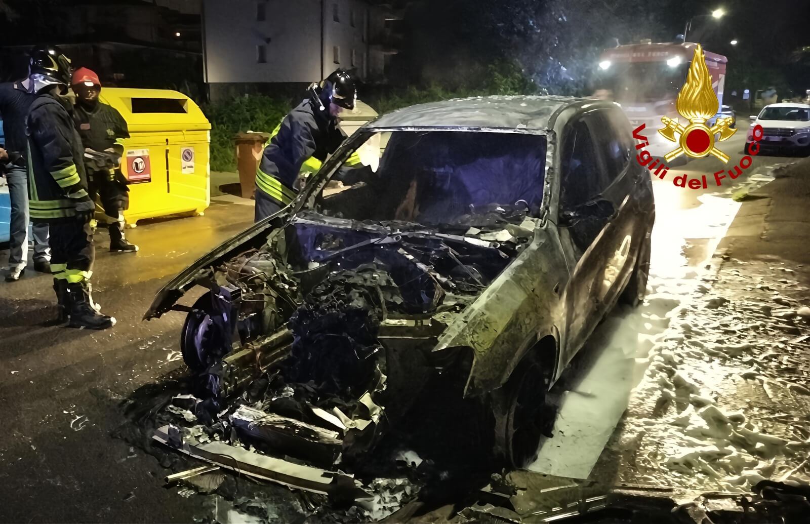 L’allarme è scattato intorno alle 2:00. Sul posto sono intervenuti i vigili del fuoco con un’autopompa, un’autobotte e sette operatori, riuscendo a domare rapidamente il rogo e a contenere i danni alla seconda vettura, colpita nella parte posteriore.