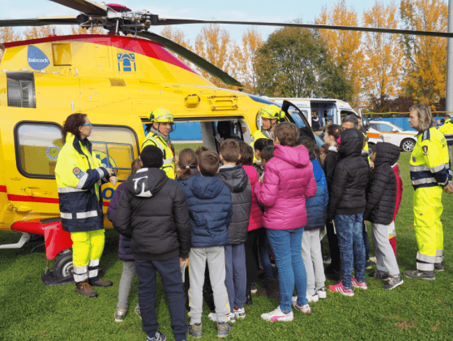 Alle 9.45, quindi, è stato diramato, con un allarme, l’ordine di evacuazione totale dell’edificio scolastico. Gli alunni, accompagnati dai rispettivi insegnanti, si sono diretti verso le uscite di emergenza per raggiungere in sicurezza i due punti di raccolta esterni allo stabile (corrispondenti a due aree verdi, rispettivamente a nord e a sud, della scuola), dove hanno effettuato l’appello e compilato il modulo di evacuazione che è stato, quindi, consegnato alla dirigente dell’istituto. Alle 9.55 il R.O.S (Responsabile delle Operazioni di Soccorso) dei Vigili del Fuoco di Vicenza, ingegner Fabio Chessari, ha verificato le presenze e la messa in sicurezza del plesso scolastico. Successivamente si è tenuto un debriefing tecnico con il contemporaneo controllo delle procedure di messa in sicurezza dello stabile tra gli osservatori, il referente del plesso scolastico ed il personale A.T.A. Alle 10.50 gli alunni si sono spostati allo stadio comunale di baseball “Ai Pomari” dove alle 11.10 è atterrato l’elicottero del Suem – 118, alla presenza delle autorità. Quindi, verso le 11.30 i ragazzi hanno potuto vedere da vicino i mezzi delle Organizzazioni di soccorso presenti con le rispettive attrezzature e capirne il funzionamento. Al termine a ciascun bambino è stato consegnata un’interessante pubblicazione redatta dal dipartimento della protezione civile regionale per “ripassare” i comportamenti adeguati in caso di pericolo.
