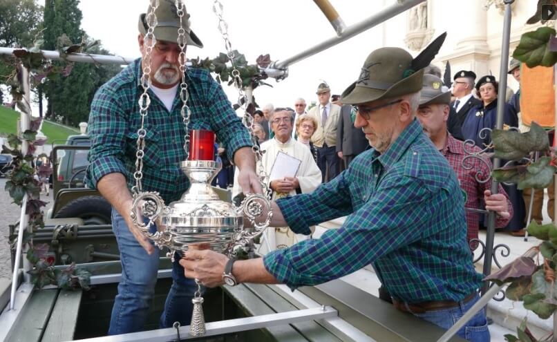 Il pellegrinaggio della “Lampada della Pace” prosegue verso il grande evento conclusivo del prossimo ottobre. Venerdì 7 settembre la lampada parteciperà alla processione diocesana verso la Basilica di Monte Berico, nella vigilia della festa patronale, con partenza dal “Cristo” alle ore 20.30. La devozione alla Madonna di Monte Berico e la Grande Guerra sono strettamente connesse, come testimoniano anche le numerose medagliette trovate nelle trincee, ma fu proprio dopo la disfatta di Caporetto che la città di Vicenza rinnovò il voto alla Madonna, impetrando la salvezza; da allora fu onorata come protettrice della città nel giorno dell’8 settembre, festa della Natività di Maria. «La “Lampada della Pace” nasce con l’anima del pellegrino – afferma Santo Giuseppe Ponza, presidente del comitato “Lampada della Pace” – e noi continuiamo a camminare insieme, portando questo simbolo di pace, ricordando oggi il voto che salì dal cuore di Vicenza. Siamo felici di partecipare al momento più importante della devozione cittadina, sempre grati agli Alpini che porteranno la lampada in processione verso la Basilica. Invitiamo tutti a seguire il viaggio della lampada, simbolo del sacrificio di molte vite, ma anche del desiderio e dell’impegno quotidiano per la pace cui siamo chiamati, nel superamento delle logiche di guerra, di trincea e di confine. È questa la vera eredità che lasciamo alle nuove generazioni». Il pellegrinaggio della Lampada della Pace si concluderà con la grande cerimonia del 27 ottobre, e con la sua collocazione definitiva nel Santuario di Monte Berico.