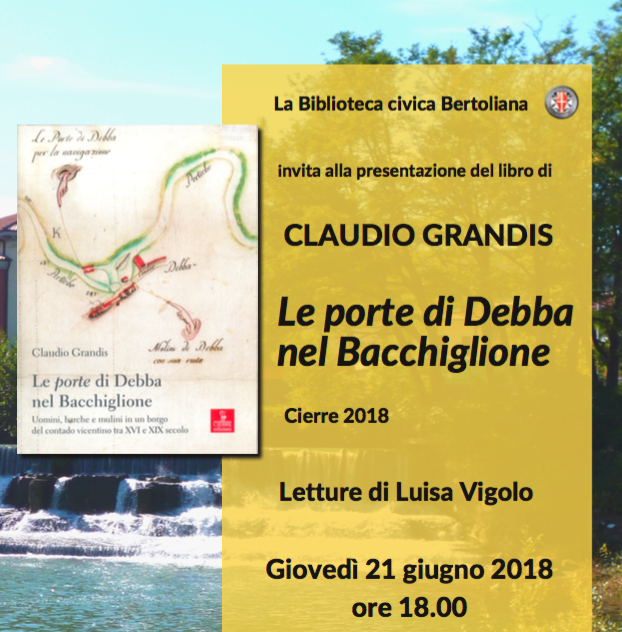 Domani a Palazzo Cordellina, alle ore 18, verrà presentato il libro di Claudio Grandis “Le porte di Debba nel Bacchiglione. Uomini, barche e mulini in un borgo del contado vicentino tra il XVI e il XIX secolo” (Cierre edizioni). In Veneto erano definite “porte” le conche di navigazione, ovvero gli invasi che permettevano alle imbarcazioni di superare dislivelli pericolosi o salti d’acqua simili a cascate. Nel 1583 a Debba, località situata pochi chilometri a sud di Vicenza, il veneziano Alessandro Bonrizzo ne costruì una nel Bacchiglione che divenne un elemento cruciale per la navigazione berica e il commercio con Venezia. Bonorizzo inoltre acquisì le quattro ruote di mulino e una vasta azienda agricola nella contigua San Pietro Intrigogna. La conca di Debba divenne nel tempo anche il capolinea di tante proposte progettuali elaborate per risolvere l’annoso dramma delle alluvioni a Vicenza. Il libro presenta una ricca documentazione storica, tratta anche dalle numerose fonti archivistiche conservate in Biblioteca Bertoliana, e ha il merito di raccontare con precisione e garbo narrativo le vicende dei proprietari della conca e dei membri della comunità locale tra Cinquecento e Ottocento, mugnai, barcaioli, fabbri e contadini che vissero a contatto con il fiume. Il volume sarà presentato dall’autore, che verrà accompagnato dalle letture di Luisa Vigolo. Claudio Grandis si dedica da anni agli studi storici, in particolare relativi ai mulini e alla navigazione fluviale. Collabora con le riviste “Terra e storia” e “Saccisica”. Con Francesco Selmin ha curato “Il Bacchiglione” (2008).  L’ingresso alla presentazione è libero.