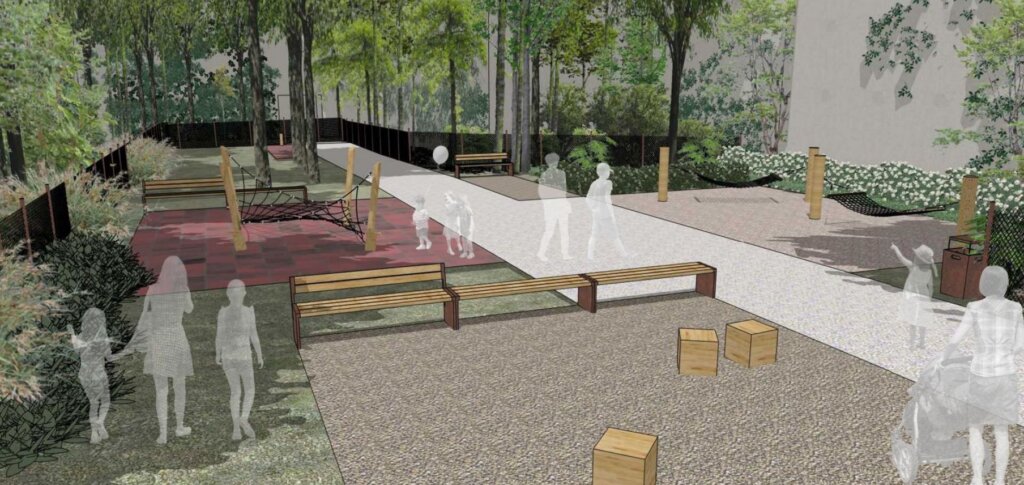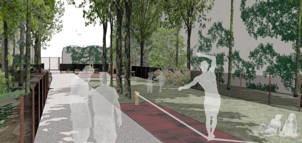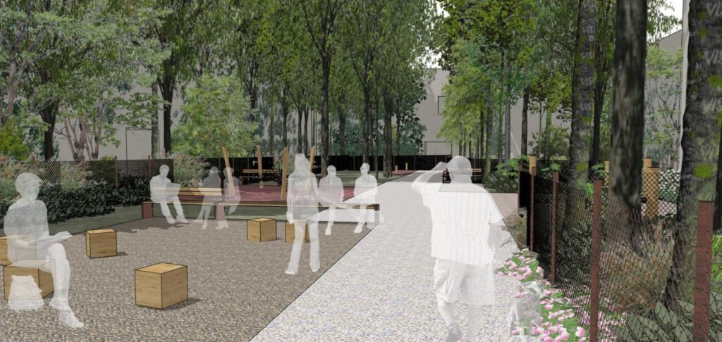 Saranno ricavati spazi per il relax, l’incontro e il gioco, con l’installazione di una slack line, amache, un “trampolino” accessibile anche ai bambini in carrozzina e, in prospettiva, la possibilità di allestire mostre di design in collaborazione con l’attigua università.