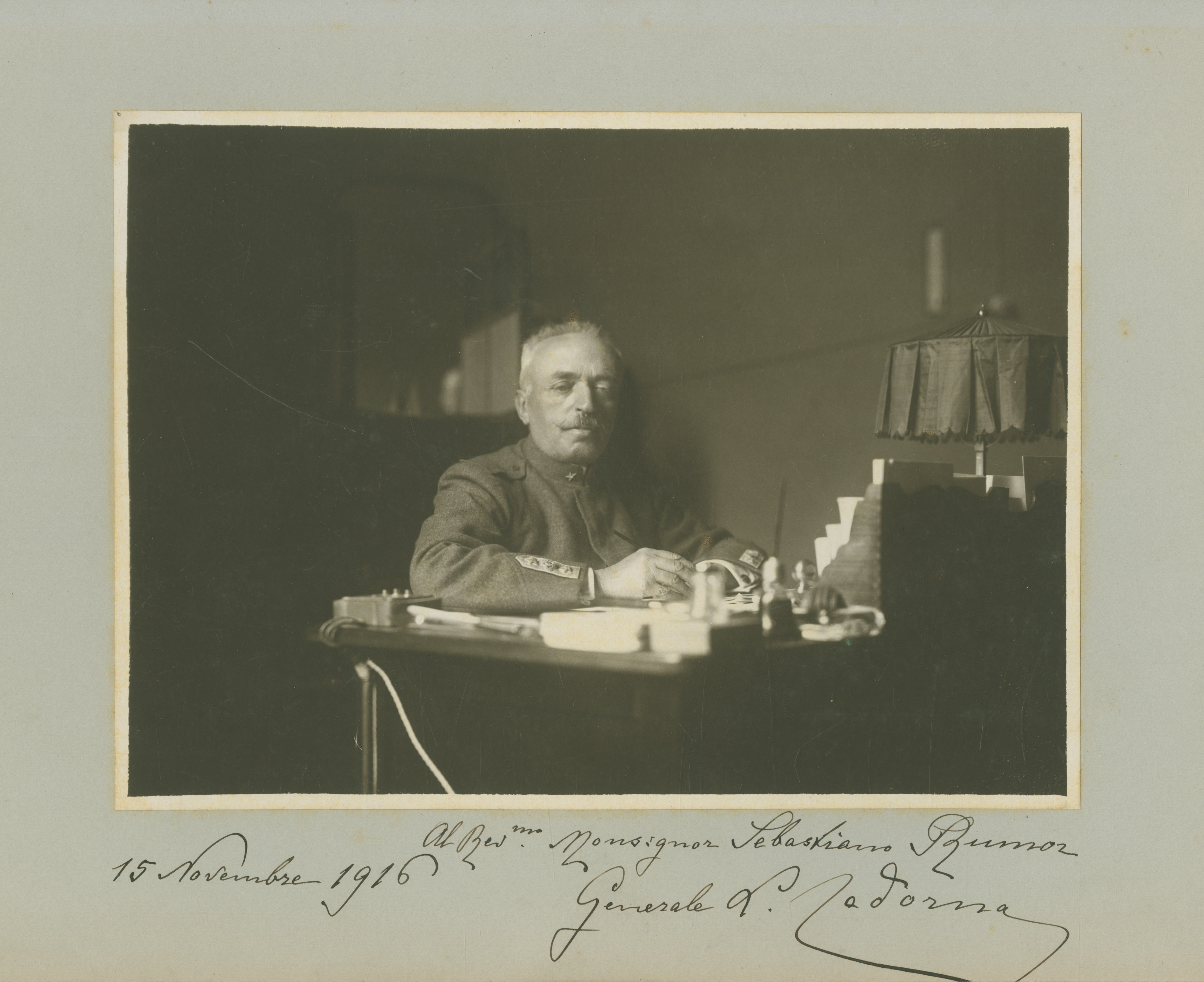Divenuto prima vice-bibliotecario della Bertoliana nel 1890 e poi bibliotecario nel 1925 in sostituzione di Domenico Bortolan, Sebastiano Rumor fu un attivissimo rappresentante del panorama culturale vicentino a cavallo fra XIX e XX secolo: discepolo di Giacomo Zanella, amico e confidente di Fedele Lampertico, Paolo Lioy e Antonio Fogazzaro (di cui raccolse e ordinò il vasto e prezioso materiale bibliografico e d’archivio ora conservato in Bertoliana) egli mise insieme una mole notevole di materiale documentario, conseguenza dell’operosità instancabile di ricercatore e storico nonché dei rapporti privilegiati con varie personalità del mondo culturale nazionale e internazionale intrattenuti nel corso della sua attività di studioso e di bibliotecario. Fra la documentazione si segnala la presenza di lettere e manoscritti di Fogazzaro, Lampertico, Zanella ma anche di Badoglio, Cadorna, Pecori Giraldi, Arrigo Boito, Carducci, Luigi Einaudi e dei futuri papi Pio X e Giovanni XXIII. Copiosa, all’interno della sezione carteggi, la documentazione che attesta la frequentazione da parte di Rumor delle più note famiglie aristocratiche e borghesi dell’epoca, nonché della sua attività di storico, bibliografo e studioso di araldica. Non mancano, infine, testimonianze d’archivio sulla famiglia Rumor e sulla loro azienda tipografica ma anche un rilevante apparato fotografico e una curiosa raccolta di santini ed epigrafi