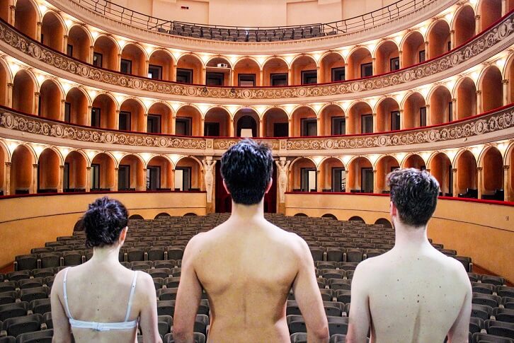 Tre attori impegnati in monologhi che non riescono a farsi dialogo, per raccontare un universo di relazioni sentimentali e generazionali bloccato nella coazione a ripetere, come riflesso di un disagio che trova nell’ironia il viatico per una ricerca pressante di attenzione. Un testo irresistibile cui giova la presenza scanzonata di attori affiatati ed efficaci”. È con questa motivazione che la Giuria di Premio Scenario, il più importante riconoscimento nazionale dedicato alla scena contemporanea emergente, ha assegnato nel luglio 2017 la sua Menzione Speciale alla giovane compagnia indipendente Amor Vacui per il progetto “INTIMITÀ”. Ed ora, quel progetto è diventato uno spettacolo compiuto che, in attesa del debutto che verrà ufficializzato a breve, verrà presentato in anteprima nazionale al Teatro Astra stasera (ore 21) all’interno del cartellone “Terrestri 17/18” curato da La Piccionaia per il Comune di Vicenza con il sostegno di Ministero dei Beni Culturali, Regione Veneto e Provincia di Vicenza. Non è certo un caso se “INTIMITÀ” ha trovato spazio proprio sullo storico palcoscenico vicentino per la sua prima presentazione al pubblico, all’interno della programmazione curata dal Centro di Produzione Teatrale veneto: infatti è proprio sul palco dell’Astra che, nel dicembre del 2016, Amor Vacui presentava il proprio progetto alla commissione zonale composta dai maggiori operatori della regione. Tra questi anche La Piccionaia, che ne ha seguito via via l’evoluzione fino a Santarcangelo di Romagna, dove il progetto è approdato all’interno della rosa dei finalisti entrando così a far parte della cosiddetta Generazione Scenario, che raccoglie vincitori e menzioni speciali di ogni edizione. Da sempre impegnata nella promozione del teatro emergente, La Piccionaia ha scelto quindi di accompagnare la realizzazione dello spettacolo con il suo sostegno produttivo, che si è aggiunto a quello del Teatro Stabile del Veneto e alla collaborazione con Armunia Centro Residenze Artistiche Castiglioncello – Festival Inequilibrio). Frutto di una scrittura collettiva condivisa tra i cinque componenti della formazione, tutti nati tra il 1984 e il 1989 – Lorenzo Maragoni che firma anche la regia, Andrea Bellacicco, Eleonora Panizzo, Andrea Tonin e Michele Ruol – lo spettacolo è un discorso intorno alla tendenza, all’interno delle relazioni, a ripetere sempre gli stessi schemi di comportamento. L’interpretazione è affidata ad Andrea Bellacicco, Eleonora Panizzo e Andrea Tonin, che provano ad affrontare questo tema in modo a un tempo pubblico e privato: “Perché le mie relazioni non riescono a durare?”, “Perché in una coppia mi sembra di annullare me stesso?”, “Perché sono sei mesi che non facciamo sesso, amore mio?”. “Forse il teatro è il luogo giusto per esplorare queste dinamiche, al microscopio e al rallentatore – spiegano gli Amor Vacui -. Gli attori, con il pubblico ogni sera diverso e ogni sera uguale, cercano loro stessi l’accesso a questa dimensione segreta, opposta alle nostre ripetizioni, alla solitudine, al narcisismo, alla distanza, alla formalità: l’intimità. Attori e pubblico non sanno niente gli uni degli altri, eppure sono entrambi lì, a cercare con determinazione e amore di costruire una relazione di reciproco ascolto, che ci accompagni anche e soprattutto fuori dal teatro, che entri in risonanza con le relazioni con le persone importanti per noi: con i nostri amici, con le nostre famiglie, con le nostre comunità di riferimento. Questo spettacolo, attraverso una storia forse d’amore tra attori e pubblico, vuole esplorare la ricerca di un equilibrio tra le reciproche disponibilità a lasciarsi comprendere, sorprendere, ascoltare. Vuole essere un contesto sperimentale in cui confrontarci con la nostra disponibilità ad essere o non essere: in intimità”.