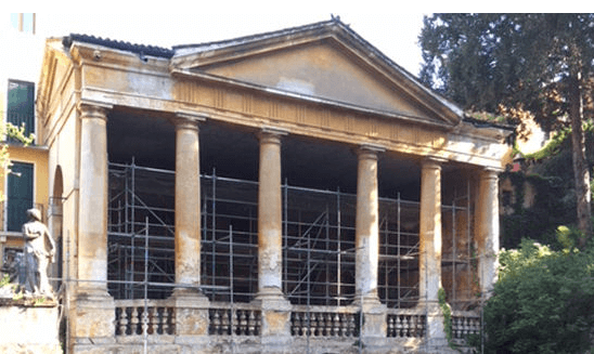 Da giovedì 19 aprile al Giardino Salvi è visibile il ponteggio necessario ad eseguire i lavori di restauro della Loggia Valmarana. Il progetto esecutivo prevede il restauro conservativo dei manufatti lapidei esterni presenti nelle facciate della loggia (cornici, finestre, cornicioni dei timpani di copertura, elementi del colonnato e della balaustra) e del paramento ad intonaco della finitura superficiale delle facciate esterne ed interne della Loggia. Il restauro riguarda principalmente il consolidamento delle porzioni di murature esterne lesionate, il consolidamento dei solai del piano terra, il restauro della copertura e delle sue strutture lignee portanti, il restauro degli elementi lapidei e degli intonaci delle facciate. Il progetto generale ha ottenuto l’autorizzazione della Soprintendenza Belle Arti e Paesaggio di Verona. Preliminarmente, perché propedeutico alle opere di restauro, è stato realizzato nel 2017 l’intervento previsto in fondazione (opere strutturali speciali con micropali). L’intervento, che sarà completato entro 180 giorni, salvo imprevisti, è suddiviso in due stralci funzionali dell’importo complessivo di 400.000 euro Iva compresa e verrà eseguito dalla ditta Lares Lavori di Restauro di Venezia. Per rendere possibile l’intervento di restauro è stato necessario ridurre il livello dell’acqua nella Seriola al Giardino Salvi.