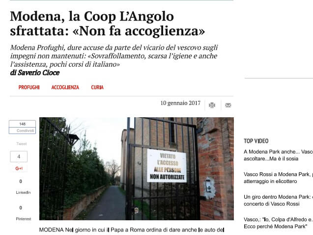 se risulti all’Amministrazione che la cooperativa che gestisce l’hub di via Catalani a Vicenza sia la stessa che aveva ingestione una analoga struttura a Modena, che nel gennaio di quest’anno la locale Prefettura, in accordo con il Vescovo di Modena, ha fatto chiudere per le condizioni dell’edificio “indecente, senza rispetto per la dignità delle persone”, con problemi di sovraffollamento (vedi foto);