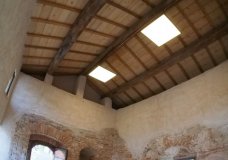 E’ stata inoltre rifatta la copertura lignea a due falde con guaina e manto in coppi, sostituendo le porzioni non più recuperabili perché marcescenti, della vecchia struttura lignea di sostegno.