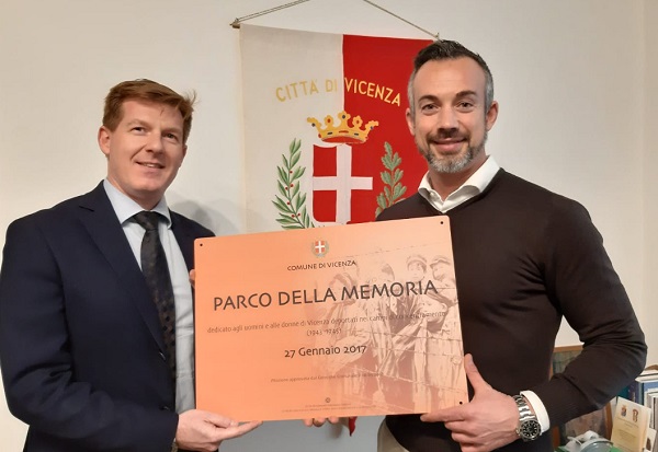 La targa, deturpata nei giorni scorsi, è stata infatti sostituita a cura e spese dell’associazione Arcigay Vicenza. La nuova targa, consegnata dal presidente Thomas Tedesco oggi pomeriggio al capo di gabinetto del Comune Luca Milani, sarà installata in tempo per l’iniziativa prevista al Parco Fornaci nell’ambito degli eventi della Giornata della Memoria.
