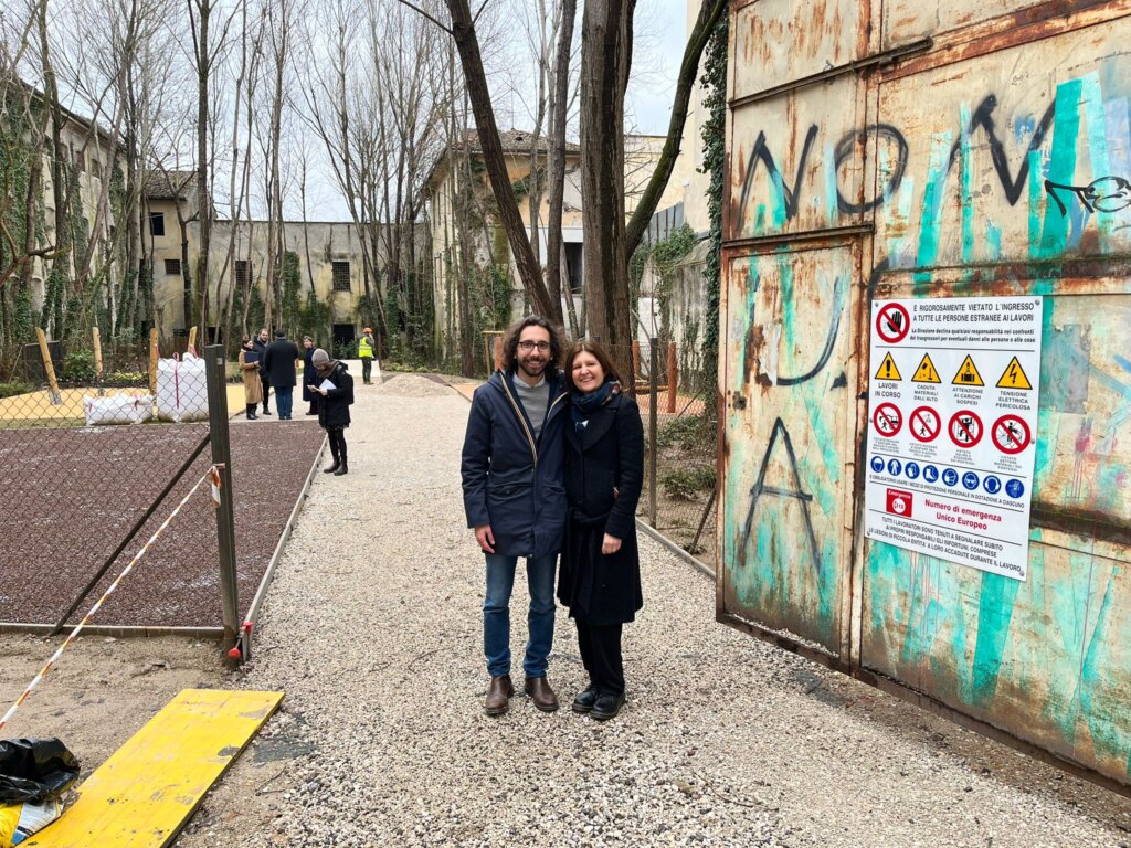 VICENZA – Un nuovo spazio verde sta per aprire nel cuore della città. In contrada Pedemuro San Biagio sono ormai alle battute finali i lavori che trasformeranno l’area dell’ex carcere in un giardino pubblico accessibile a tutti. Questa mattina il sindaco Giacomo Possamai, insieme agli assessori Cristiano Spiller (Lavori pubblici) e Cristina Balbi (Sviluppo economico e territorio) e al consigliere comunale Stefano Dal Pra Caputo, ha effettuato un sopralluogo nel cantiere quasi ultimato.