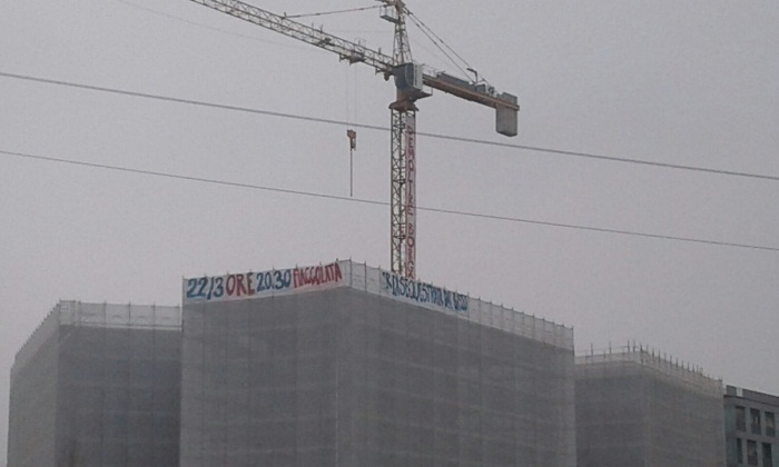 Gli attivisti di Vicenza si Solleva hanno occupato stamane all’alba il cantiere di Borgo Berga. Due persone si sono barricate sulla Gru, mentre altri si sono incatenati per bloccare i lavori. All’esterno altri attivisti sono in presidio per tutelare le persone all’interno e supportarle. A darne notizia sono gli stessi militanti con comunicati stampa, foto e video.