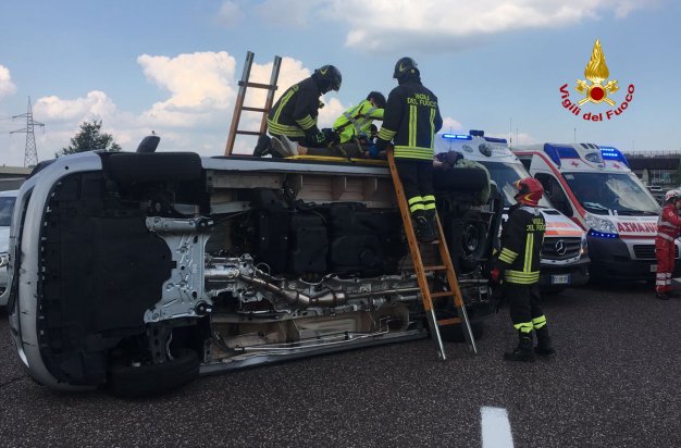 Poco dopo le 16, i vigili del fuoco sono intervenuti lungo l’autostrada A4 poco dopo l’immissione del casello di Vicenza ovest in direzione Milano per un incidente, che ha coinvolto 4 mezzi: dieci persone coinvolte, tre feriti. La squadra dei pompieri ha messo in sicurezza i mezzi e soccorso una giovane ragazza canadese, rimasta ferita a un braccio, che all’arrivo dei soccorsi si trovava in alto sul fianco di un furgone Opel Movano rovesciatosi, assistita dalla madre. La donna è stata stabilizzata dal personale del suem 118 e trasferita in ospedale insieme alla mamma e l’autista della Toyota Yaris. Illeso l’autista del Fiat Doblo e dell’altro furgone centinato insieme al passeggero. Gli altri quattro passeggeri canadesi del Movano sono stati medicati sul posto. La polizia stradale ha effettuato i rilievi del sinistro, sul posto anche il personale ausiliario dell’autostrada. Le operazioni di soccorso dei vigili del fuoco sono terminate dopo circa un’ora.