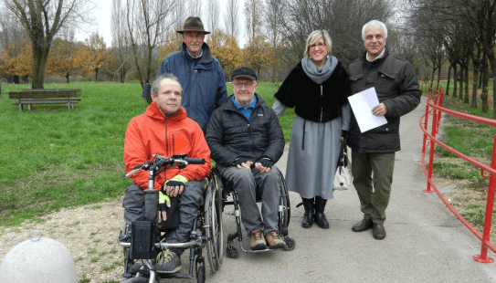 Oltre a Leopoldo Carta, vicepresidente del Rugby Vicenza, al sopralluogo hanno partecipato anche Giulio Tronca ed Elvio Gatto, il primo segretario dell’associazione H81 Vicenza, il secondo vicepresidente dell’associazione Ugualmente abili di Sandrigo, entrambi del gruppo mobilità della Fish provinciale, la Federazione italiana per il superamento dell’handicap, che hanno testato personalmente e con soddisfazione il nuovo percorso.