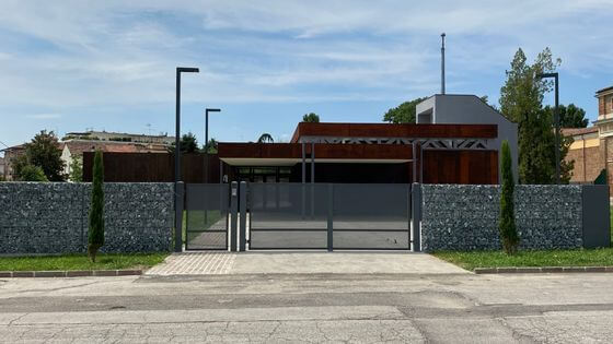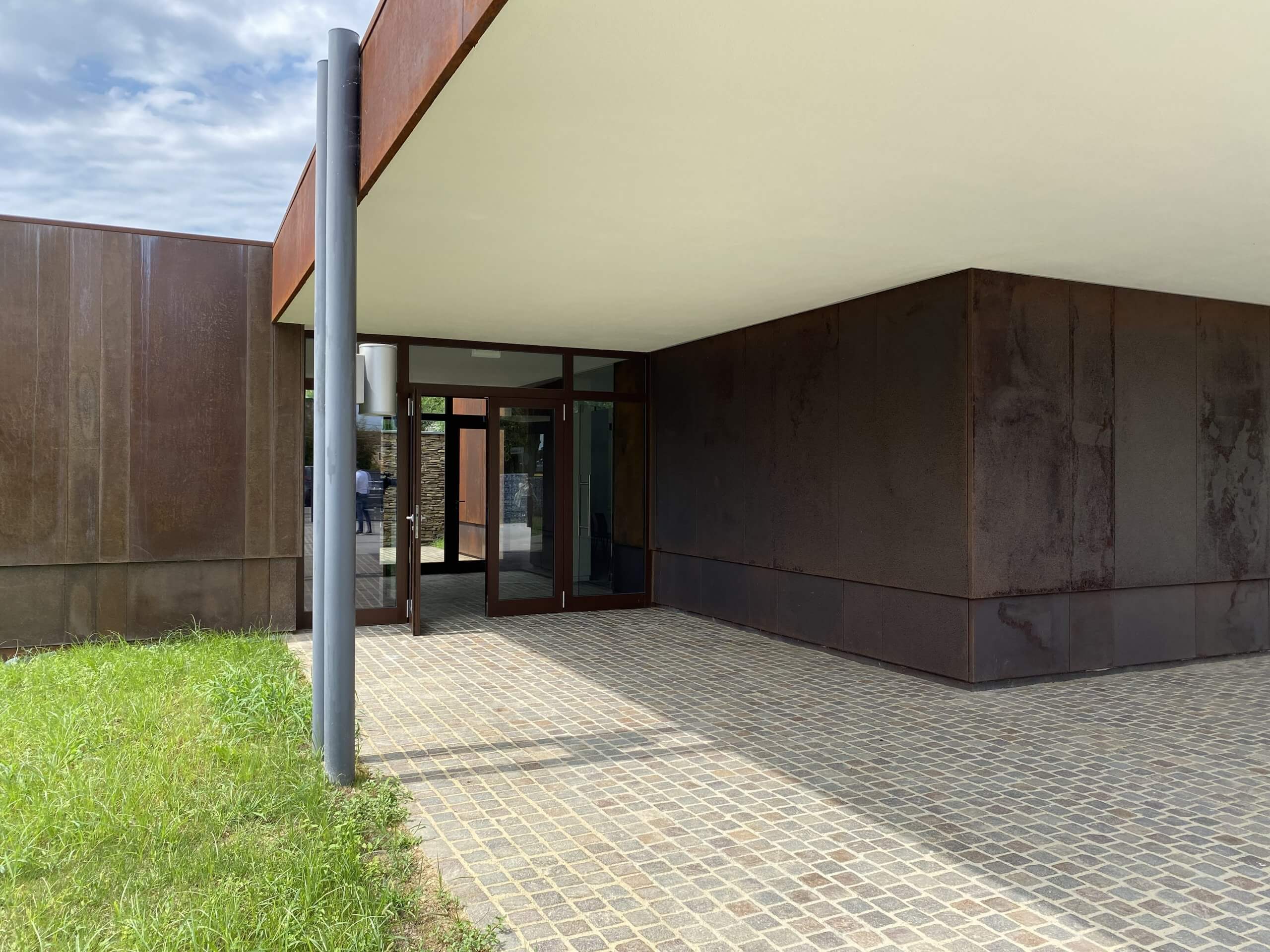 All’esterno sono stati piantati alberi, siepi e cespugli ed è stata rifatta la recinzione ed è stato installato l’impianto di illuminazione. Sono stati inoltre posati circa 240 metri quadrati di pavimentazione carrabile per il passaggio dei carri funebri e un percorso pedonale in cubetti di porfido.