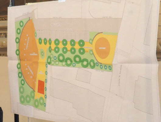 L’area antistante la chiesa di 2.400 metri quadrati, di proprietà privata è stata ceduta al comune attraverso la variante verde.