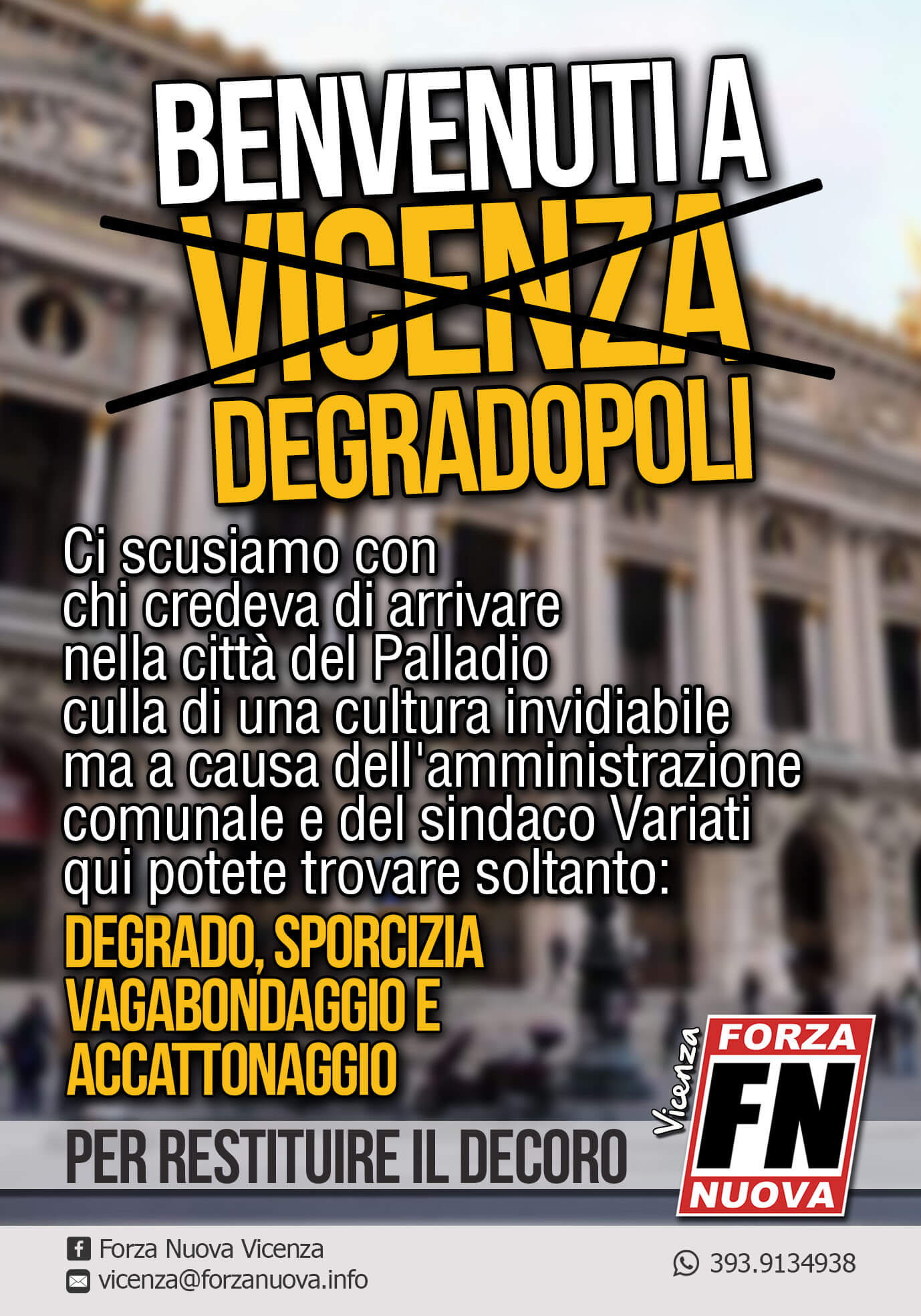 VICENZA – Provocazione Forza Nuova: “Recintiamo Campo Marzo con Variati dentro”