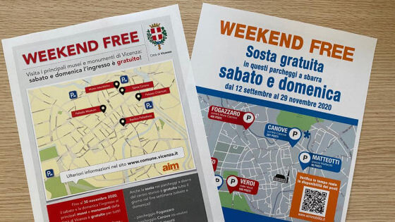 Da sabato 12 settembre a domenica 29 novembre, ogni sabato e domenica, a Vicenza si sosta gratuitamente nei sei parcheggi a sbarra del centro storico gestiti da Aim e si entra gratuitamente in Basilica palladiana e nei musei civici.