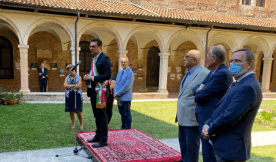 “Nella bellissima piazza San Lorenzo – ha ricordato il sindaco Francesco Rucco nel corso della cerimonia che si è tenuta nel chiostro di San Lorenzo – abbiamo dato nuova luce al monumento che ne fa memoria, restaurandolo con la collaborazione degli studenti dell’Engim. E’ il doveroso tributo che Vicenza doveva al suo illustre poeta, promotore di arte e bellezza, nell’anno in cui candidiamo la città e il territorio a Capitale italiana della cultura 2024”.