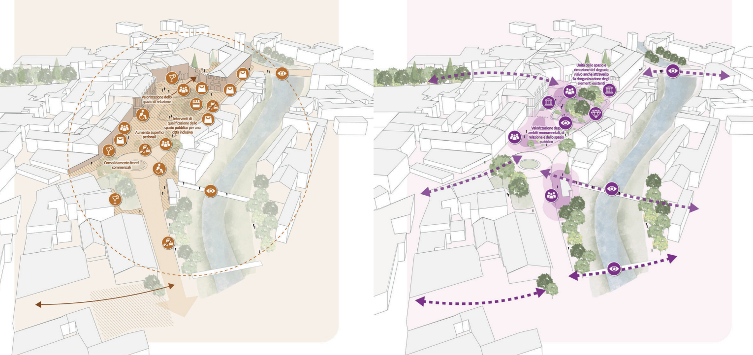 - Recupero della memoria dell’acqua – valorizzazione storica e identitaria legata al fiume e alla vita della piazza.