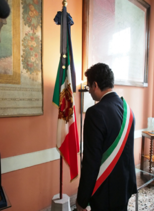 Francesco Rucco si è quindi recato nel suo studio per portare un breve omaggio alla bandiera di Vicenza, decorata con due medaglie d’oro al valore militare per la strenua difesa opposta agli austriaci nel 1848 e per la lotta di Liberazione durante l’occupazione tedesca (1943 – 1945). Successivamente, come da tradizione, il nuovo sindaco è sceso in piazza dei Signori per rendere omaggio alla lapide della torre Bissara che ricorda i caduti vicentini nella Guerra d’Indipendenza, mentre domani in mattinata renderà omaggio alle lapidi dedicate alle vittime della guerra di Liberazione che dal 2013 si trovano nel parco del Museo del Risorgimento e della Resistenza.
