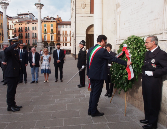 Francesco Rucco si è quindi recato nel suo studio per portare un breve omaggio alla bandiera di Vicenza, decorata con due medaglie d’oro al valore militare per la strenua difesa opposta agli austriaci nel 1848 e per la lotta di Liberazione durante l’occupazione tedesca (1943 – 1945). Successivamente, come da tradizione, il nuovo sindaco è sceso in piazza dei Signori per rendere omaggio alla lapide della torre Bissara che ricorda i caduti vicentini nella Guerra d’Indipendenza, mentre domani in mattinata renderà omaggio alle lapidi dedicate alle vittime della guerra di Liberazione che dal 2013 si trovano nel parco del Museo del Risorgimento e della Resistenza.