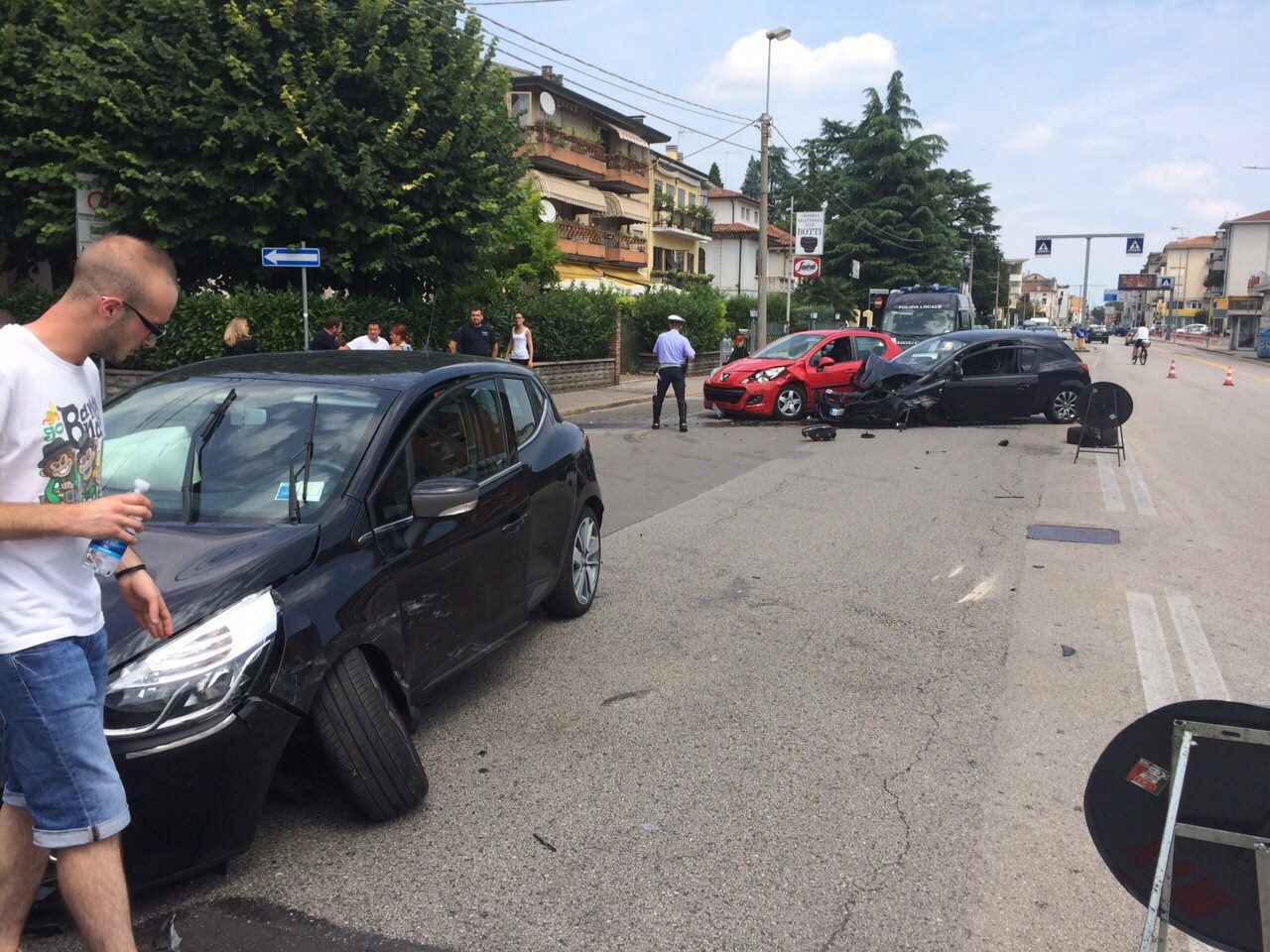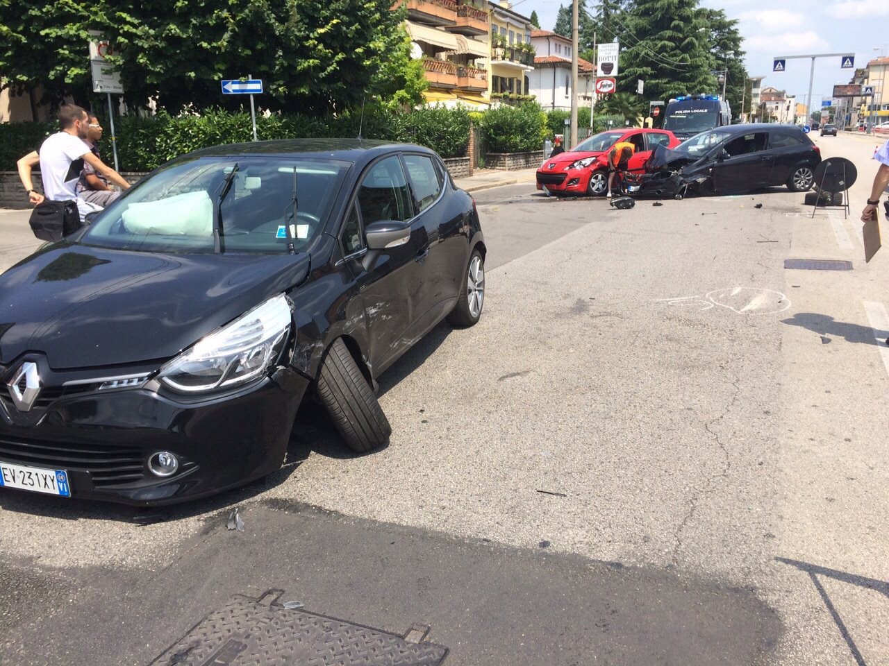 Scontro fra tre automobili oggi poco dopo le 13 in viale San Lazzaro a Vicenza, all’altezza del supermercato Prix in direzione Verona. Coinvolta una Clio nera condotta da una donna, dipendente del concessionario Renault di Vicenza, una Peugeot condotta da una donna di 74 anni e una Fiat condotta da un infermiere. Vi sarebbero due feriti, portati all’ospedale San Bortolo di Vicenza. Avrebbe avuto la peggio una giovane, con diverse contusioni (anche al bacino). Sul posto per i rilievi la polizia locale di Vicenza e per i soccorsi il Suem 118. Ancora poco chiara la dinamica dell’incidente, causato probabilmente ad una mancata precedenza.