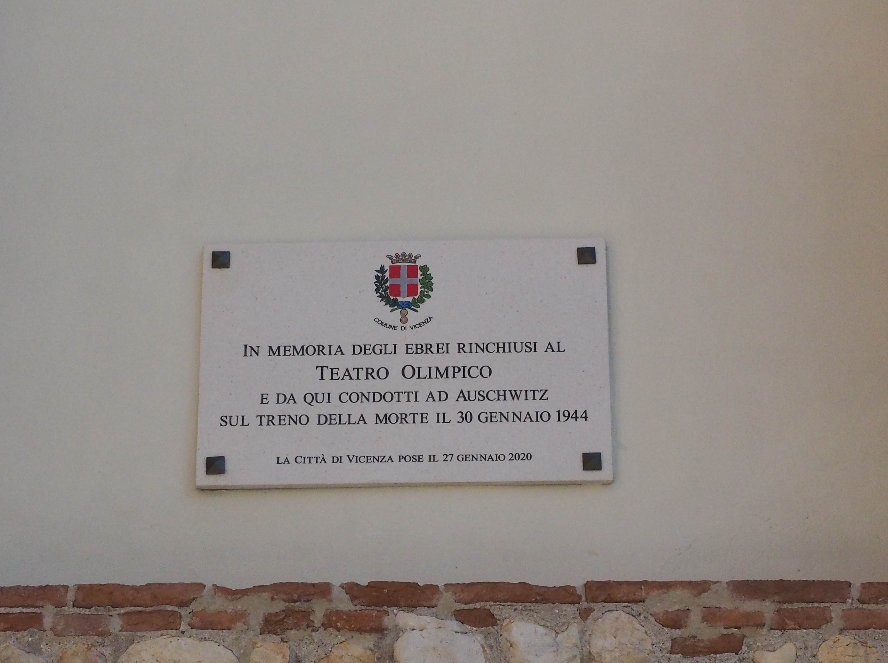 Questo il testo della lapide del Teatro Olimpico: “In memoria degli ebrei rinchiusi al Teatro Olimpico e da qui condotti ad Auschwitz sul treno della morte il 30 gennaio 1944”.