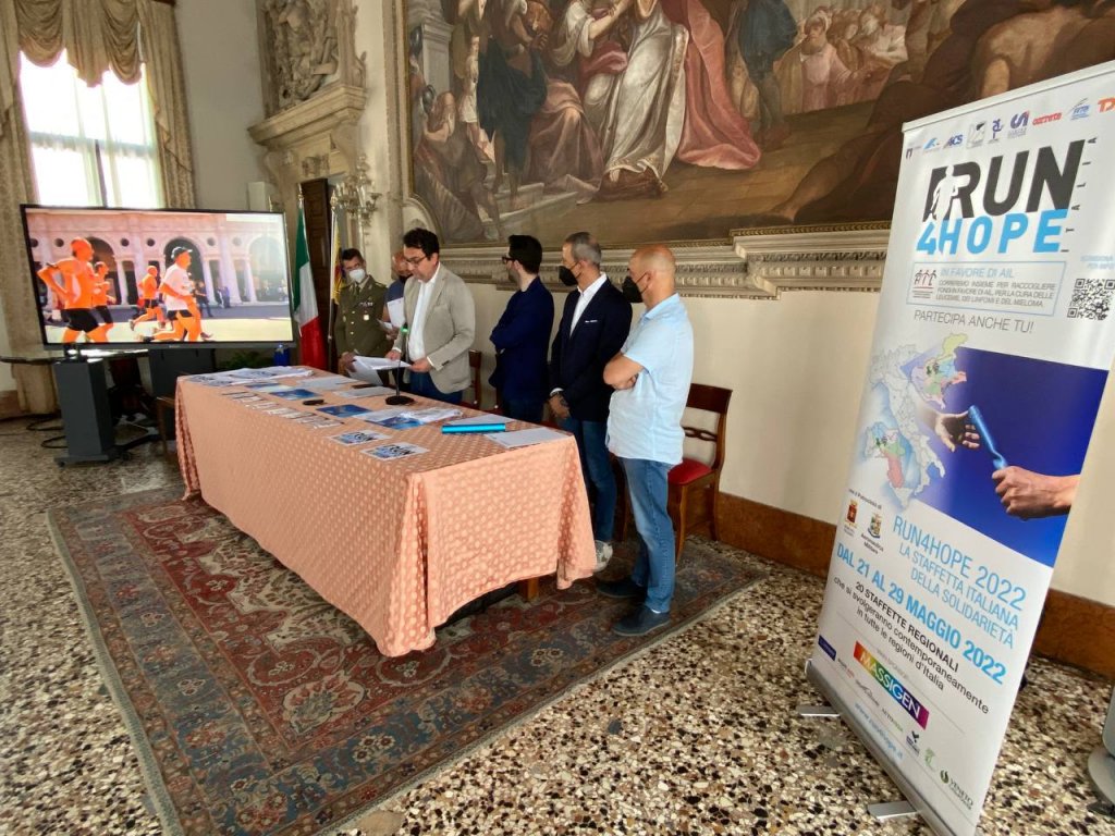 “Un saluto e un ringraziamento particolare agli organizzatori per questa preziosa iniziativa che vede tantissimi protagonisti mossi da uno stesso obiettivo: raccogliere fondi a favore dell’Associazione Italiana contro le leucemie, linfomi e mieloma (Ail) e dei pazienti ucraini affetti da tumori del sangue– ha precisato il sindaco Francesco Rucco –. Invito tutti gli appassionati ad aderire alla Run4Hope che prenderà il via sabato 21 alle 11 da Vicenza e, precisamente, da piazza San Lorenzo, per tornarci domenica 29, toccando tante città del Veneto. Ogni donazione, piccola o grande, sarà fondamentale per sostenere chi è meno fortunato di noi”.