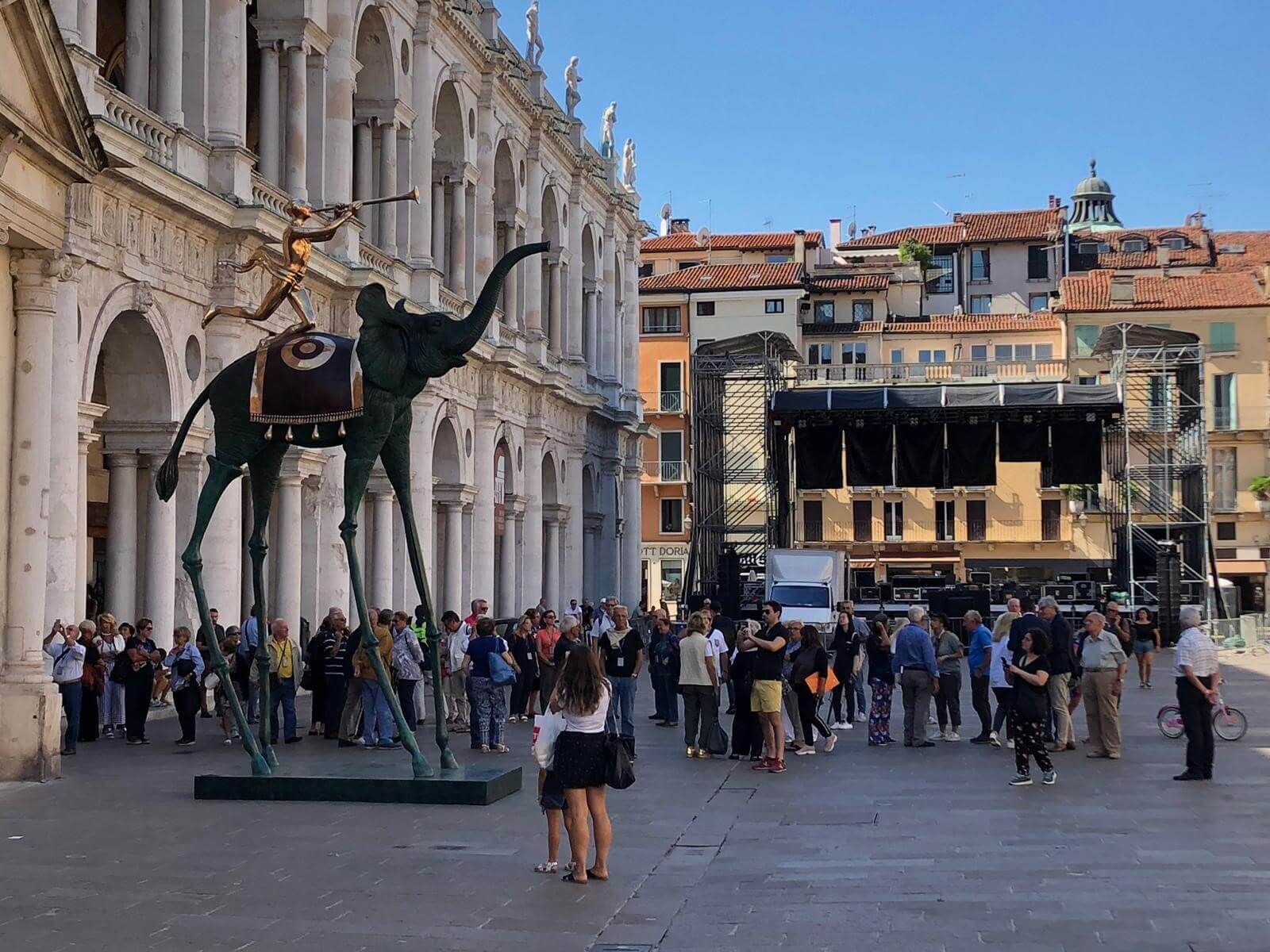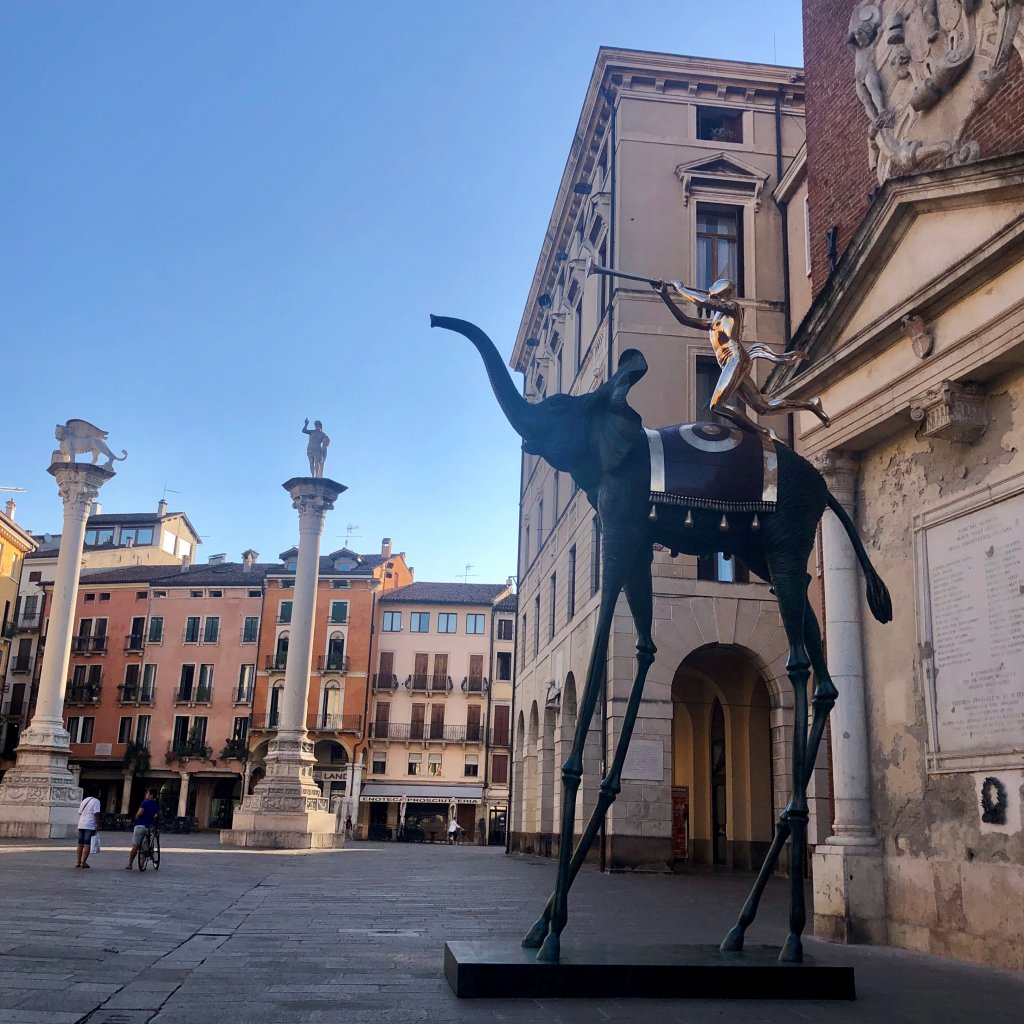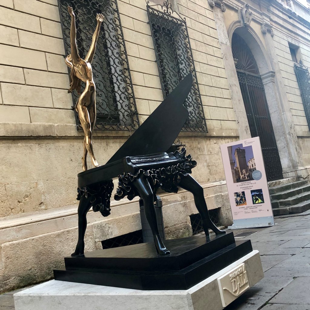 Stamane la città di Vicenza è stata salutata con un buongiorno che sa tutto di surrealismo: le maestose statue di Salvador Dalí sono state installate, nel cuore della notte, lungo le vie del centro e sul piazzale della fiera. È proprio nella città di Andrea Palladio, lungimirante architetto che ha ispirato intere generazioni, che trovano collocazione ideale le statue monumentali e museali dell’artista spagnolo, che non ha mai nascosto la profonda ammirazione per il grande architetto, teorico e scenografo del Rinascimento italiano, definendolo «el archetipo de lo daliniano». Le statue sono state allocate nei luoghi più emblematici del centro della città, al cospetto dei palazzi, chiese, ville e portali palladiani che hanno valso nel 1994 la nomina di Vicenza a Patrimonio Mondiale dell’Umanità. I cittadini potranno contemplare da oggi le sculture monumentali e museali del genio surrealista appartenenti all’importante collezione di Beniamino Levi tra le vie di Vicenza, che ha accolto la Venere Spaziale, in piazza Matteotti, l’Elefante del Trionfo, in piazza dei Signori, la Ballerina Daliniana, nella Basilica Palladiana, la Danza del Tempo III, in piazza San Lorenzo e, infine, il Pianoforte Surrealista, tra Contrà Cavour e corso Palladio. Sul piazzale antistante il quartiere fieristico di Italian Exhibition Group, invece, si possono ammirare la Danza del Tempo I e Omaggio a Tersicore, che, a conclusione di Vicenzaoro September, saranno esposte nelle piazze delle Erbe e De Gasperi dove resteranno fino al 26 gennaio 2020.