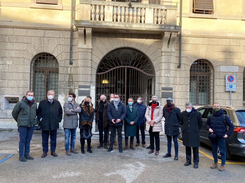 Prima del sopralluogo si è tenuto un incontro a Palazzo Trissino, in cui è stato illustrato il progetto di manutenzione straordinaria e riqualificazione della sede di San Biagio, redatto dallo studio Boccuni di Verona sotto la supervisione del servizio Lavori pubblici e manutenzioni del Comune.