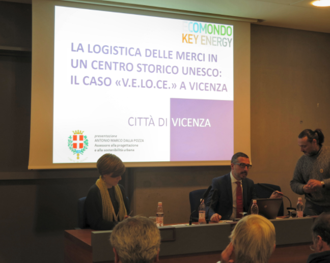 C’è anche Vicenza tra i 22 esempi virtuosi – messi in atto da amministrazioni, associazioni o cittadini con esperienze e idee di cambiamento per città più dinamiche, sostenibili, vivibili e rispettose dell’ambiente – premiati alla XXI edizione di “Ecomondo”, la fiera internazionale del recupero di materia ed energia e dello sviluppo sostenibile, che si è tenuta nei giorni scorsi a Rimini. Ad essere segnalata tra le “buone pratiche” è stata V.E.Lo.Ce., il Centro Eco-Logistico vicentino – partecipato per il 55 per cento dal Comune di Vicenza – che, mediante l’utilizzo di mezzi a ridotto impatto ambientale, cura la distribuzione intelligente delle merci nella zona a traffico limitato (ZTL) e nelle aree pedonali (AP) del centro storico, servendo oltre 300 negozi all’interno del chilometro quadrato della ZTL. A rappresentare il capoluogo berico in fiera era presente l’assessore alla progettazione e sostenibilità urbana Antonio Marco Dalla Pozza che ha illustrato il funzionamento del centro eco-logistico vicentino V.E.Lo.Ce. “La logistica delle merci in un centro storico Unesco: il caso V.E.Lo.Ce. a Vicenza”. Vicenza ha ricevuto altri due premi al “Forum Rifiuti Veneto 2017 – Alla ricerca di soluzioni intelligenti”, organizzato da Legambiente a Palazzo Rinaldi a Treviso per un confronto e scambio tra amministratori ed operatori del settore, utile a conoscere alcune delle migliori esperienze di economia circolare venete e ad analizzare i casi concreti di ostacolo allo sviluppo dell’economia circolare made in Italy. A ritirare i premi era presente l’assessore alla progettazione e sostenibilità urbana Antonio Marco Dalla Pozza. Vicenza ha ottenuto, infatti, una menzione speciale tra i Comuni Ricicloni “Rifiuti Free” del Veneto, unico ente con una popolazione superiore ai 100 mila abitanti ad aver superato l’obiettivo del 65 per cento della raccolta differenziata. L’altro premio è stato consegnato per il centro eco-logistico vicentino V.E.Lo.Ce. per la distribuzione intelligente delle merci nella ZTL e nelle aree pedonali del centro storico. “Abbiamo ricevuto con grande soddisfazione questi ulteriori riconoscimenti legati alla sostenibilità che Legambiente nazionale e Veneta hanno assegnato al nostro Comune e a un’eccellenza come V.E.Lo.Ce., a testimonianza del grande impegno sui temi ambientali profusi in questo decennio dall’amministrazione e dal mio assessorato – ha dichiarato l’assessore alla progettazione e sostenibilità urbana Antonio Marco Dalla Pozza –. Sul tema dei rifiuti Vicenza oggi primeggia tra i Comuni con popolazione superiore ai 100 mila abitanti sia in Veneto sia in Italia, grazie ai cittadini che hanno compreso bene come differenziare correttamente il rifiuto e grazie alle politiche di Aim Ambiente che sono riuscite a coniugare alti indici di differenziazione con tariffe basse.”.