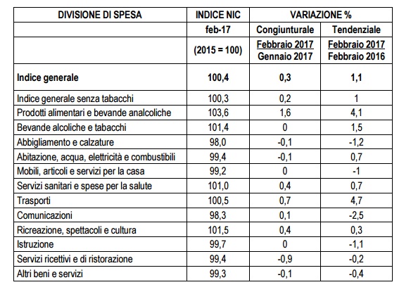 Pubblichiamo i dati della rilevazione mensile dei prezzi al consumo a Vicenza. Nel mese di Febbraio 2017 l’indice dei prezzi al consumo (provvisori) per l’intera collettività (NIC) nel comune di Vicenza ha registrato una
