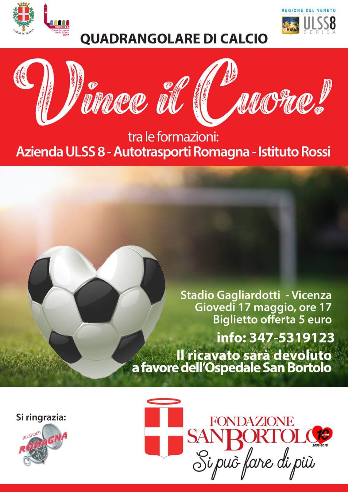 Una partita di calcio per raccogliere fondi da destinare all’ospedale San Bortolo: si giocherà giovedì 17 maggio a partire dalle 17.00 a Vicenza, presso il campo sportivo di via Gagliardotti. Per l’occasione saranno quattro le squadre che si confronteranno: la formazione dell’ULSS 8 Berica, ben due formazioni che riuniranno per l’occasione alcuni insegnanti e alunni dell’ITIS Rossi e la squadra dell’azienda Autotrasporti Romagna di Malo. Per il pubblico il costo del biglietto sarà di 5 euro e il ricavato sarà interamente devoluto alla Fondazione San Bortolo, in particolare per nuovi progetti di potenziamento e miglioramento della Chirurgia Generale dell’Ospedale di Vicenza. Si rinnova così ancora una volta una tradizione – quella del torneo di calcio per raccogliere fondi a favore dell’ospedale cittadino – che dura ormai da oltre 15 anni, combinando per un pomeriggio sport, beneficenza e impegno civico.