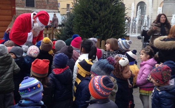 Ieri Babbo Natale è arrivato a Vicenza all’interno di una sfera, correndo avanti ed indietro per Corso Fogazzaro. Oggi si è fermato ed ha incontrato nella sua casetta di Piazza San Lorenzo i bimbi delle scuole. Domani dalle ore 15 si rimetterà in cammino per il nobile corso e le altre vie del centro di Vicenza insieme al suo mussetto Whisky porgendo a grandi e piccini i migliori auguri di buone feste.