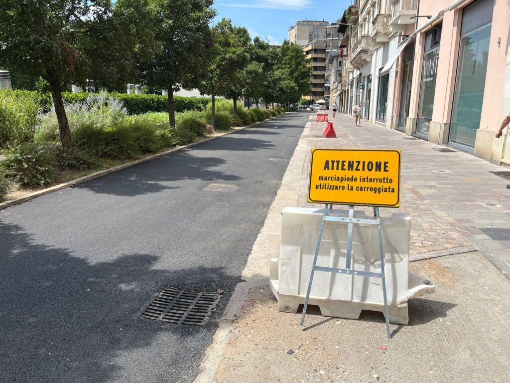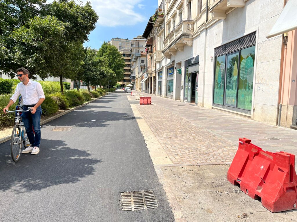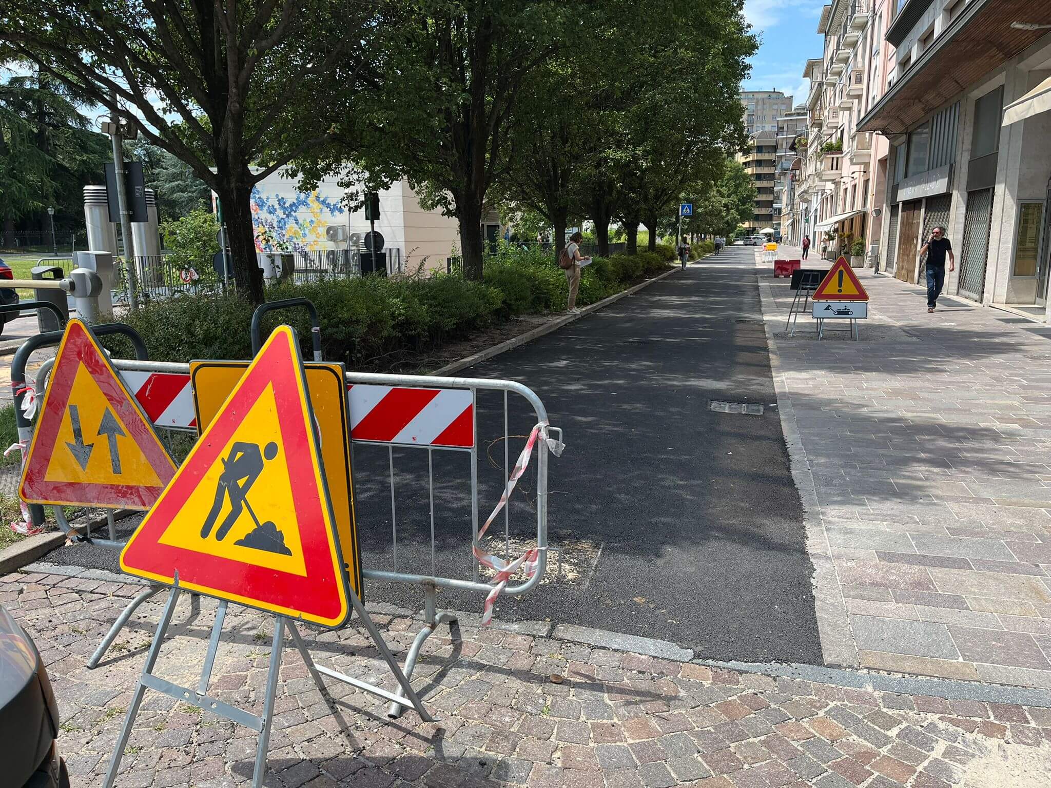«L’intervento è finanziato con 450 mila euro del Pnrr con l’obiettivo di dare maggior percorribilità urbana e pedonale a questo spazio – le parole dell’assessore Spiller -. La strada è lunga 160 metri per una superficie di 1300 metri quadri che per metà è stata pavimentata a porfido. I marciapiedi sono stati ampliati, anche le aree di sosta che rimarranno per residenti sono state realizzate in cubetti di porfido e in futuro potranno anche prestarsi a un ampliamento delle superfici a plateatico. In autunno verranno piantumati dieci alberi ed entro l’estate verrà anche implementata l’illuminazione con dei nuovi punti luce per illuminare maggiormente il marciapiede che collega i due accessi del parcheggio Verdi: quest’ultima è stata una richiesta dei residenti e dei commercianti che abbiamo incontrato all’inizio dei lavori e che siamo riusciti ad accogliere all’interno di questo progetto. A causa di questa modifica migliorativa del progetto iniziale e della riapertura periodica del viale in occasione di eventi come mercati e manifestazioni su viale Roma, che hanno comportato l’interruzione del cantiere, i tempi di realizzazione dell’opera si sono allungati di qualche mese. Dopo l’asfaltatura, conclusasi questa settimana, e il ripristino della segnaletica orizzontale che avverrà nei prossimi giorni, entro poche settimane la via verrà nuovamente riaperta al transito veicolare. Durante i lavori è stato comunque sempre garantito il transito dei pedoni, dei frontisti e dei mezzi per il carico scarico delle merci».