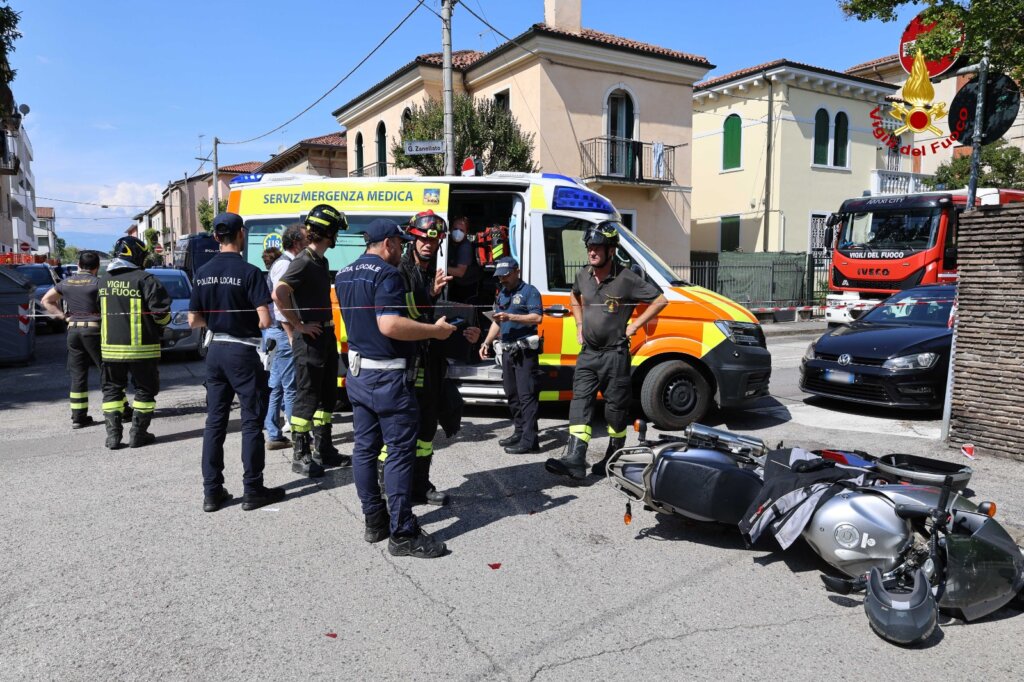 VICENZA – Violento scontro auto-moto: due feriti (foto e video)