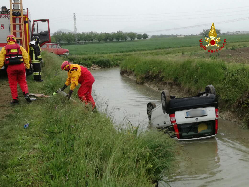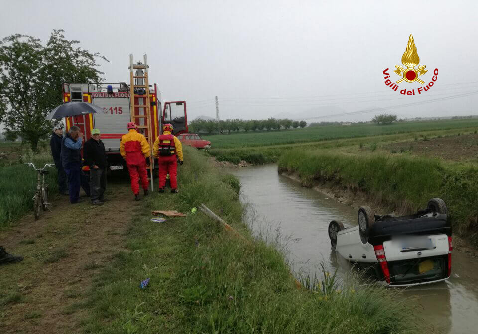 Ieri alle 15.20, i vigili del fuoco sono intervenuti località Altura di Villaga per il salvataggio di un automobilista, rovesciatosi nel canale di scolo Fiumicello e rimasto bloccato nell’abitacolo con la testa appena fuori dall’acqua, sorretta da un giovane. I pompieri accorsi da Lonigo sono subito riusciti a liberare il piede dell’uomo, che lo bloccava in acqua, liberandolo. Gli operatori hanno issato il 69 enne del posto sull’argine, prestandogli il primo il primo soccorso, nell’attesa dell’arrivo del suem 118, intervenuto con l’elicottero e con un ambulanza. L’incidente è avvenuto quando l’uomo facendo manovra sulla stradina di campagna è scivolato con l’auto nel canale. Un passante ha visto l’incidente, dando l’allarme alla sala operativa del 115, nel frattempo accorreva un giovane, che entrando in acqua e sostenendo la testa dell’uomo permetteva il successivo salvataggio dell’uomo da parte dei vigili del fuoco.