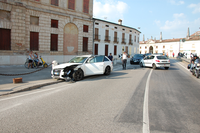 Ancora sangue sulle strade vicentine. Tre le auto coinvolte e cinque i feriti, tra cui anche un bambino, il bilancio dell’incidente di domenica a Villaverla. Erano da pochi minuti passate le 17:00 quando S.R., signora 45enne residente a Thiene, all’altezza della curva di piazza del Popolo, ha perso il controllo della sua Peugeot 206 finendo nella corsia opposta. Inevitabile l’impatto con un’altra auto, una Audi A4, guidata da M.R., uomo 42enne di Lugo di Vicenza, proveniente dalla opposta direzione di marcia. In pochi secondi è finita coinvolto anche un terzo veicolo, la BMW di J.N., 25enne macedone residente a Bolzano Vicentino.