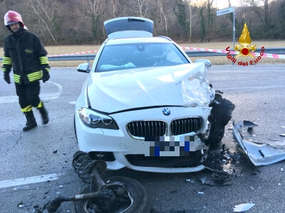 Alle 15.45, i vigili del fuoco sono intervenuti all’incrocio tra Viale Asiago e Via Gobetti a Bassano del Grappa per lo scontro tra due auto: ferito un anziano. La squadra dei pompieri accorsa dal locale distaccamento, ha messo in sicurezza i mezzi, ed estratto utilizzando cesoie e divaricatori idraulici, l’uomo, rimasto bloccato all’interno dell’abitacolo di una Peugeot 307. Il ferito è stato preso in cura dal personale del suem 118 per essere portato in ospedale. Illeso l’automobilista della Bmw. La polizia locale ha eseguito i rilievi per ricostruire la dinamica del sinistro.