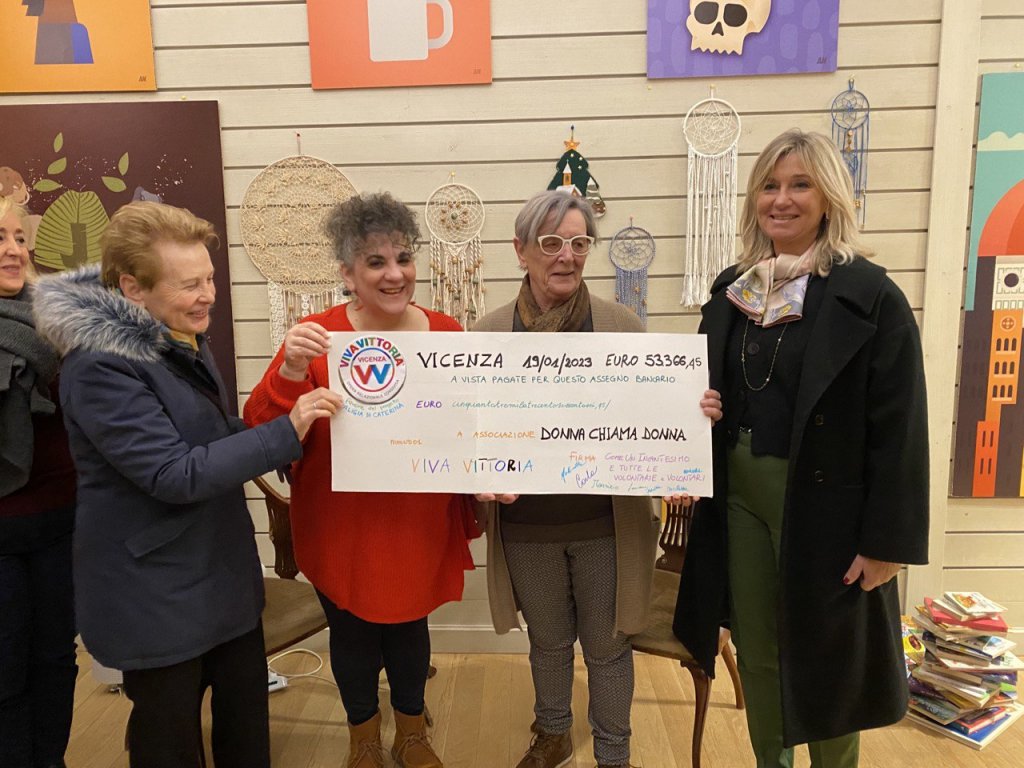 La consegna dell’assegno è avvenuta alla casa di Viva Vittoria, in contra’ del Monte 10, alla presenza di Roberta Albiero, assessore al patrimonio del Comune di Vicenza, di Carla Spessato, coordinatrice del progetto per la città di Vicenza attraverso l’associazione Come un Incantesimo, e di Laura Zanichelli, vicepresidente del Donna chiama Donna, e di rappresentanti del gruppo promotore che ha portato a Vicenza l’iniziativa, nata a Brescia nel 2015.