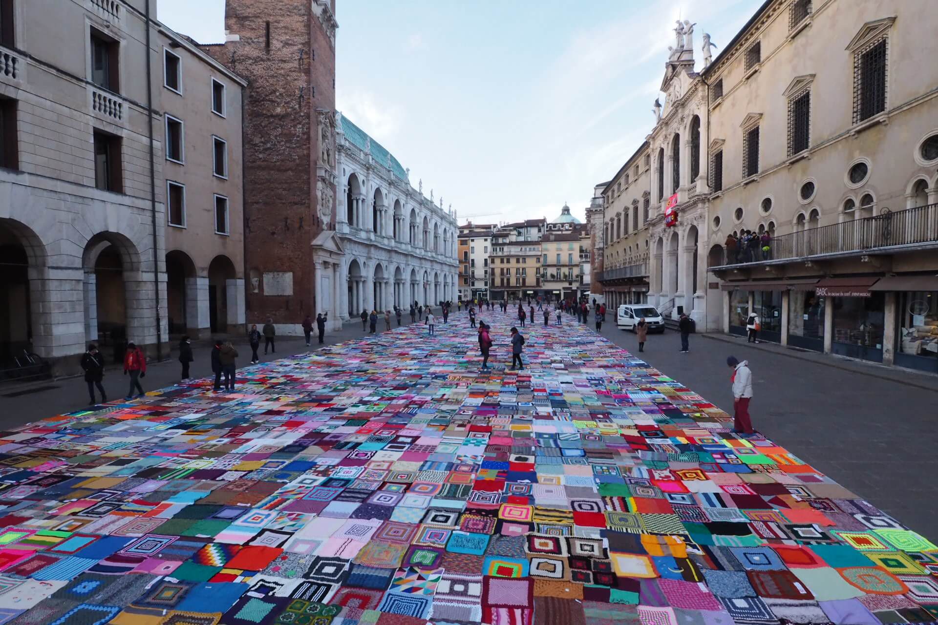 Sono state 2.200 le coperte acquistate in cambio di una donazione nella due giorni dedicata all’iniziativa del 19 e 20 novembre 2022, che ha visto il 19 novembre l’intera piazza dei Signori ricoperta di un tappeto colorato composto da migliaia di quadrati realizzati da volontarie e volontari nei mesi precedenti.