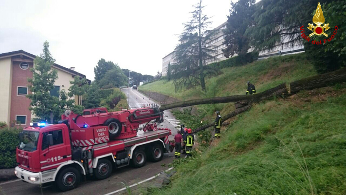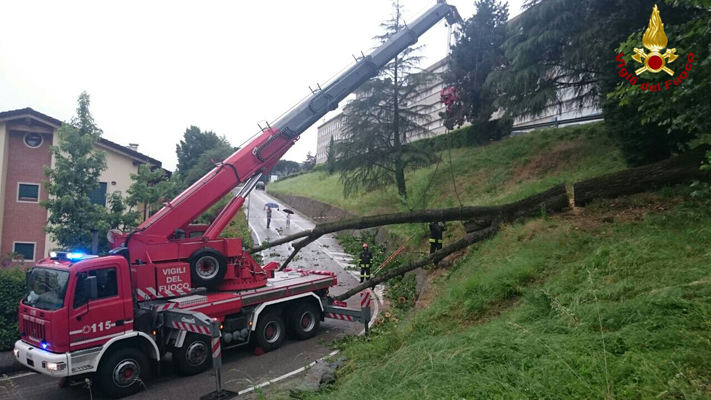 Il maltempo torna a fare danni e non solo ai bilanci delle piscine, che, nella domenica appena trascorsa, per forza di cose, sono dovute rimanere chiuse. Al primo vero temporale dell’estate 2015 (o quasi-estate, visto che, nonostante il termometro parli da solo, all’estate del calendario manca poco meno di una settimana) il copione sembra lo stesso dell’anno scorso: grandine, bombe d’acqua, forte vento con conseguenti disagi, allagamenti e piante sradicate. Tutto il vicentino, città inclusa, nella giornata di ieri ne hanno risentito, qualche zona, però, è stata colpita maggiormente. Ad Arzignano e Arcugnano, per esempio, è stato necessario l’intervento dei vigili del fuoco. L’allarme è scattato poco dopo le 14 nella città dell’Ovest Vicentino: a causa del forte vento, un grande albero, in via Ospedale Nuovo, è caduto, bloccando la via. Miracolosamente, al momento della caduta, la strada era sgombra e non ci sono stati feriti. I vigili del fuoco di Arzignano hanno provveduto a tagliare con le moto seghe i rami dell’albero per liberare la strada. Poco dopo, la stessa scena ad Arcugnano, in via Fontega, dove a correre sul posto sono stati i colleghi della stazione di Vicenza, coadiuvati dai colleghi di Padova.