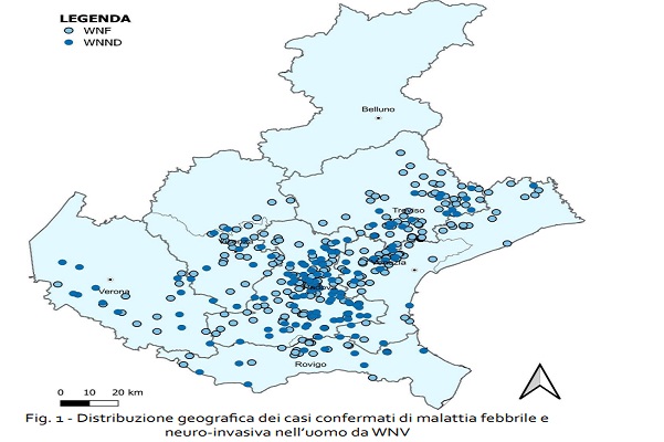 Ammontano ad un totale di 476 (rispetto ai 471 della scorsa settimana) i casi di West Nile registrati e confermati in Veneto, dei quali 309 di febbre WNF e 167 della forma neuroinvasiva WNND. I casi confermati nei donatori di sangue che vengono testati prima della donazione continuano ad essere 30. Stabili i decessi rispetto alla settimana scorsa (21). L’età media delle persone malate è di 83 anni. Il 71,4% sono maschi.