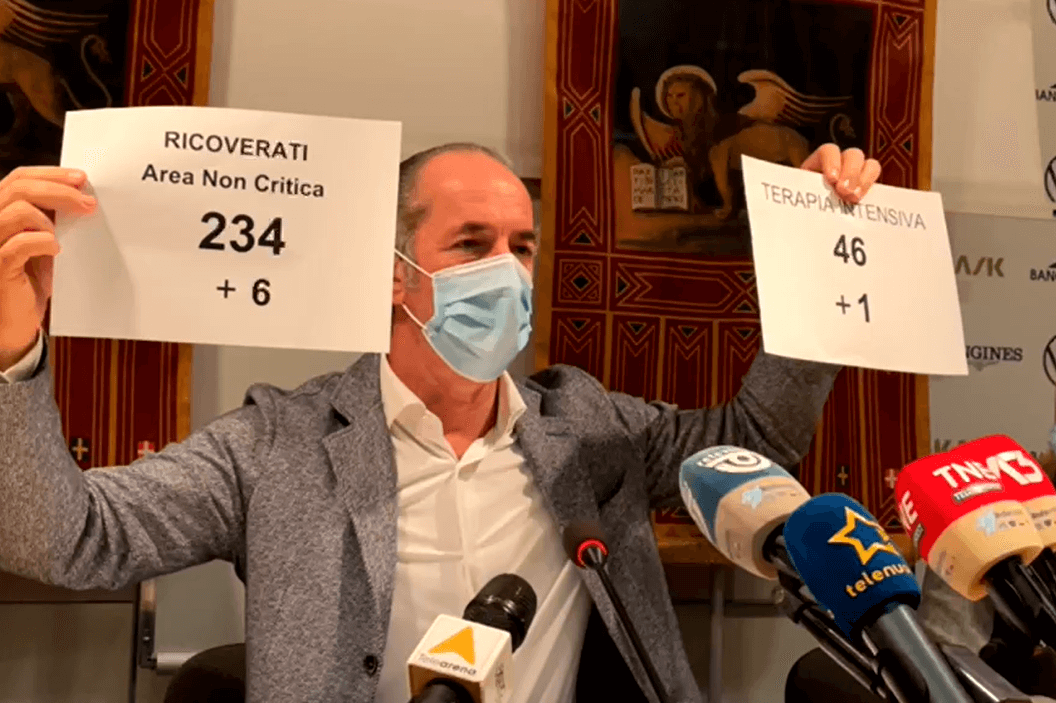 Dopo aver dato un aggiornamento sui contagi, decessi e ricoveri, il governatore Zaia dichiara: