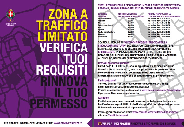 ZTL Vicenza – Permessi rinnovati a scaglioni: ecco le informazioni utili